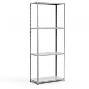 Стеллаж 4 полки, 4 стойки, 4 подпятника, 16 уголков жесткости, 64 комп.крепежа. Нагрузка на полку до 100 кг.